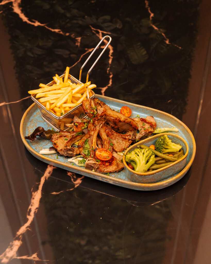Chuletillas de cordero a la parrilla, tiernas y sabrosas, servidas con acompañamiento y salsa barbacoa. Un plato intenso y tradicional. Alérgenos: 🥛 Lácteos