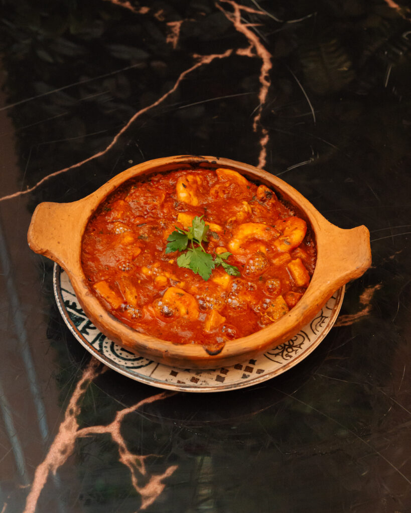 Salsa tradicional de tomate cocinada con pescado espada y gambas, aromatizada con aceite de oliva y perejil. Ideal para disfrutar con pan. Alérgenos: 🐟 Pescado · 🦐 Marisco