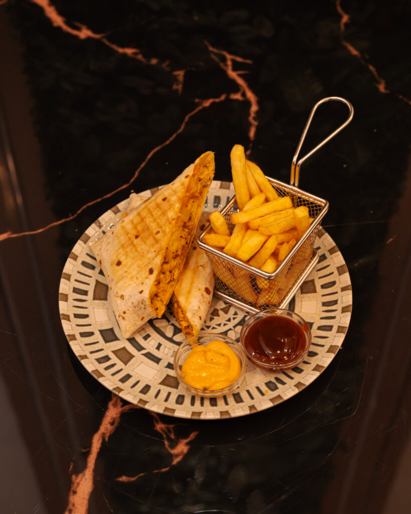 Taco crujiente relleno de nuggets dorados y patatas fritas, acompañado de salsa de queso casera y salsa especial de la casa. Una opción divertida y muy popular. Alérgenos: 🌾 Gluten · 🥛 Lácteos